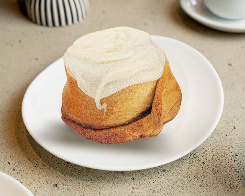 Rollos de canela, con cobertura de vainilla.