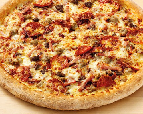 Pepperoni, salchicha, bacon, carne de res, jamón y queso mozzarella. 5 exquisitas carnes en una misma pizza.