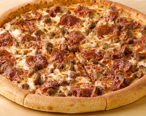 Pepperoni, chorizo italiano picante, chile rojo molido y queso mozzarella.