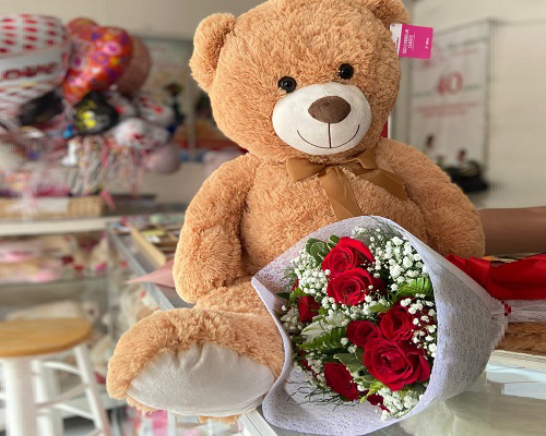 Peluche de 1 metro con bouquet 12 rosas - Floristería Mil Flores