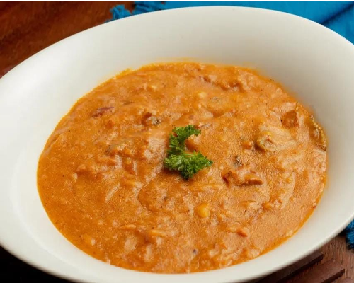 Guiso de maíz preparado con carne, hierbas y vegetales.