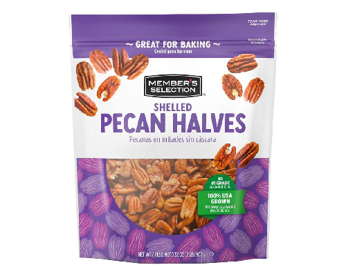 Estas deliciosas mitades de pecanas sin sal y sin cáscara son cultivadas en los Estados Unidos. Son perfectas para añadirlas a tus recetas y platos favoritos. Producto de grado #1 en Estados Unidos. Nuestros productos Member's Selection son fabricados con calidad premium a un valor excepcional.
