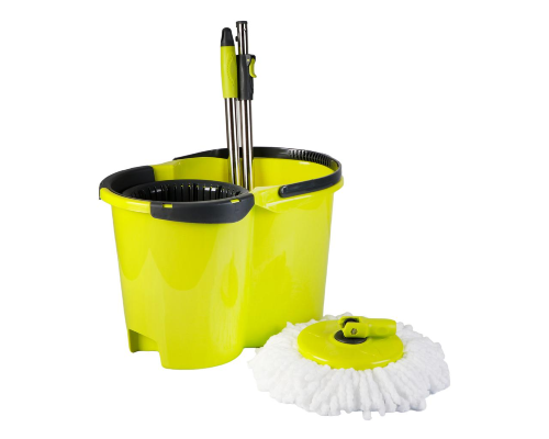 Este set de trapeador balde es práctico y de alto rendimiento. Úsalo en todo tipo de pisos (baldosa, madera, pisos laminados, pizarra, linóleo, etc.) y quita las manchas incluso en los rincones más difíciles de alcanzar. Incluye balde de 16 litros y trapeador giratorio con mando telescópico con giro de 360°, microfibra absorbente que elimina el polvo y la suciedad. Escurre el trapero sin mojarte las manos.