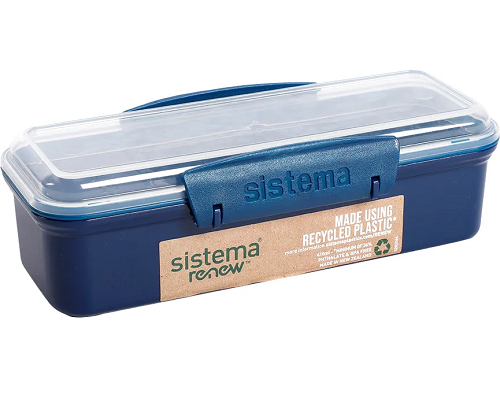 Sistema Renew es una gama de productos de almuerzo reutilizables que se fabrican con una proporción de plástico reciclado. El objetivo de Renew es utilizar al menos un 30% de plástico reciclado, que es material postindustrial (residuos de producción de Sistema). Sistema Renew es un proyecto que se enfoca en brindar soluciones sostenibles y amigables con el medio ambiente para el almuerzo. Sistema Snack Attack cuenta con dos compartimentos internos donde tus snacks se mantienen separados hasta que van a ser consumidos. Con los clips que son fáciles de bloquear y el sello flexible, sus alimentos se mantienen frescos durante más tiempo. Libre de ftalatos y BPA. Capacidad: 410mm. Dimensiones: 19 x 8 x 5,8 cm.