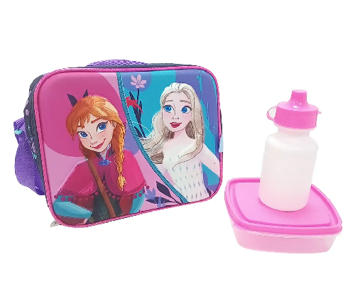 La Lonchera Frozen, que incluye botella y sandwichera, es ideal para llevar tus alimentos de manera segura y con estilo. Con su diseño temático de Elsa, Anna y Olaf, esta lonchera destaca por su practicidad y encanto. Cuenta con aislamiento térmico para mantener tus comidas frescas, compartimentos organizadores y una botella y sandwichera a juego. ¡Disfruta de tus comidas con la compañía de Frozen con la Lonchera Frozen!