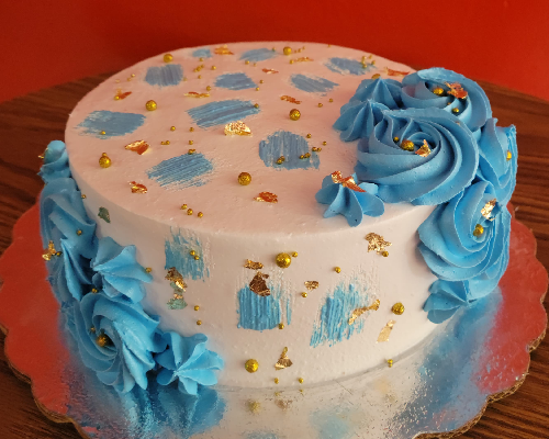 Pastel de Roseton Azul con Adornos Dorados - La Pastelería