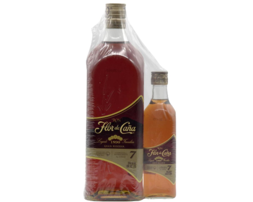 Contiene 1 unidad de Ron Flor de Caña de 1750 mL y 1 unidad de Ron Flor de Caña de 375 mL | Ron Naturalmente Añejado Gran Reserva | 7 años de elaborado | Elaborado sin azucar | Añejado naturalmente sin ingredientes artificiales | Destilado 100% con energía renovable | País de origen Nicaragua.
