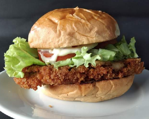 Mahi Mahi crujiente, lechugas mixtas, tomate, salsa tártara picante con papas fritas o ensalada a elección.
