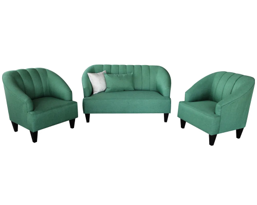 Siéntase cómodo en la nostalgia moderna de mediados de siglo con el juego de Lovesea y sillones Esmeralda. Tapizado en una tela inspirada en la moda masculina con una textura atemporal, este económico juego de muebles de diseñador está vestido para impresionar con los clásicos cojines de respaldo capitoné, un perfil delgado y lineal y patas de clavija cónicas que están justo en el punto.