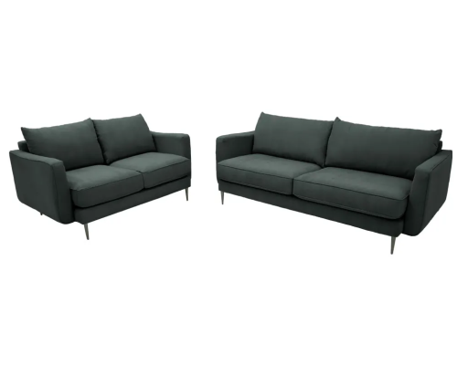 El paquete de sofá y loveseat Scala es un renacimiento de mediados de siglo hecho a la perfección. Lineal y minimalista, el perfil bellamente editado tiene todos los elementos retro que te encantan, como brazos protectores, almohadas acolchadas y piernas ahusadas y extendidas. El tapizado de tela en diferentes colores, tan informal y moderno, traslada el look al presente. Charcol