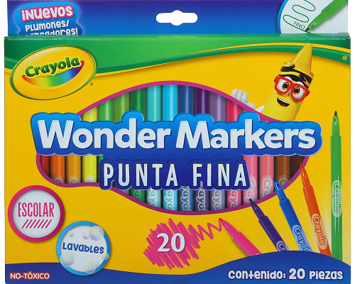Caja 20 unidades marcadores wonder markers punta fina (lavable) - Crayola