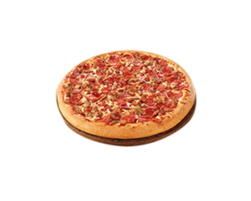 ¡Un festín de carnes! Pepperoni, topping de res, bacon, salchicha italiana, jamón y topping de cerdo.