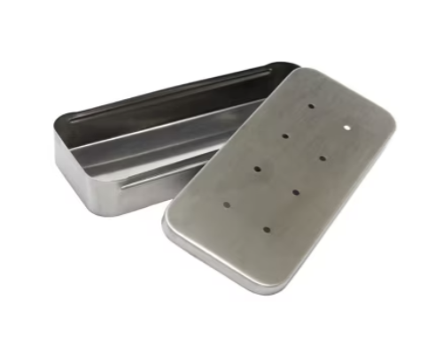 Caja de ahumado para barbacoa, con medidas de 5 x 8 pulgadas en color plateado y fabricada en acero, marca Grill Mark.